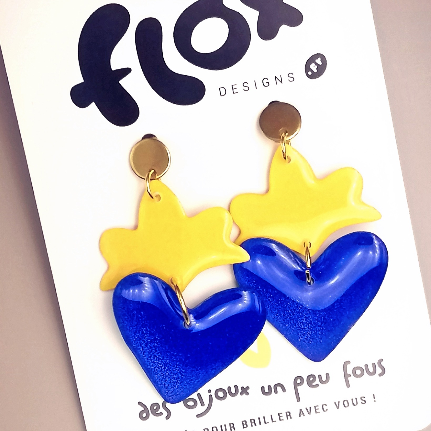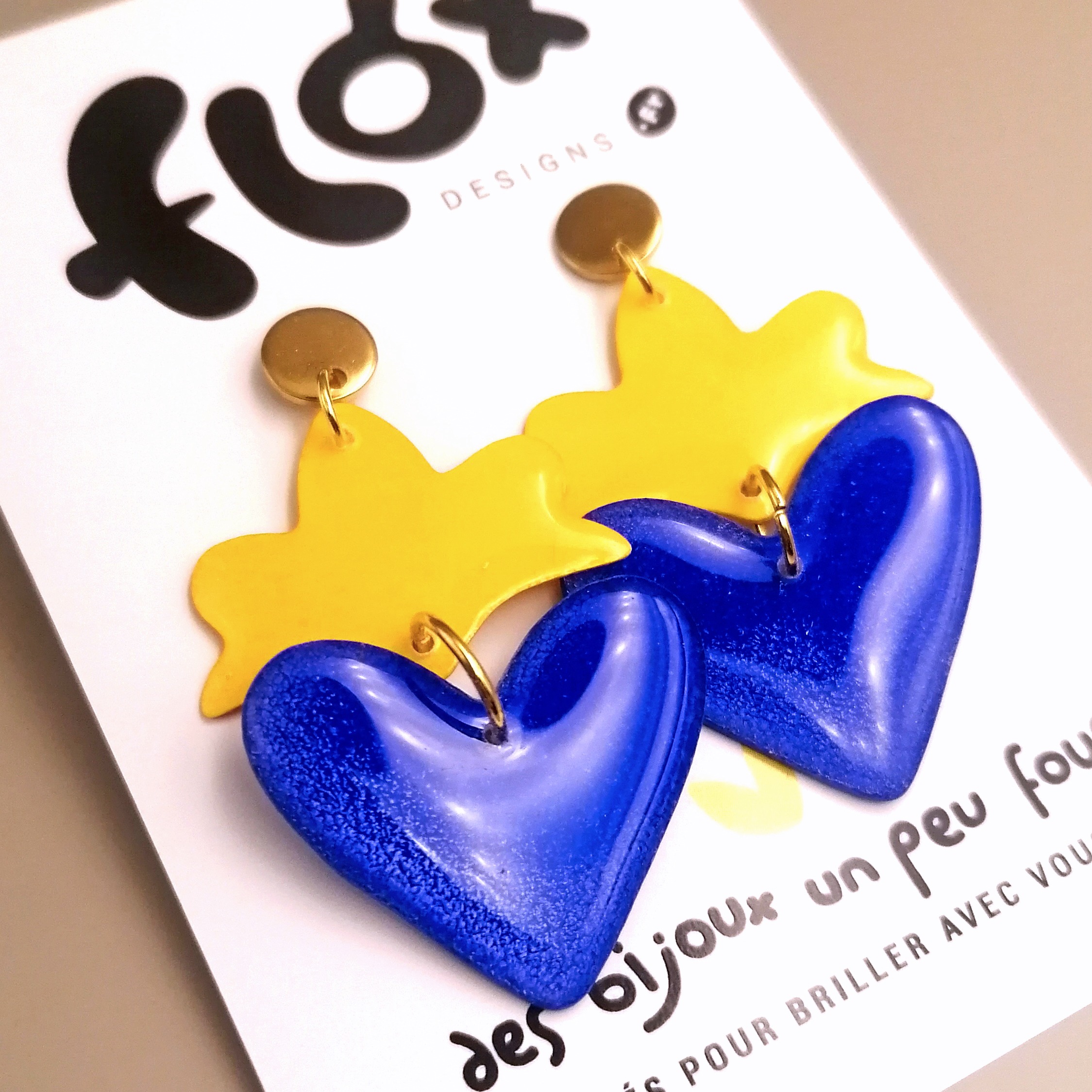Montage sur clou et assemblage métal doré. Convient aux oreilles percées.