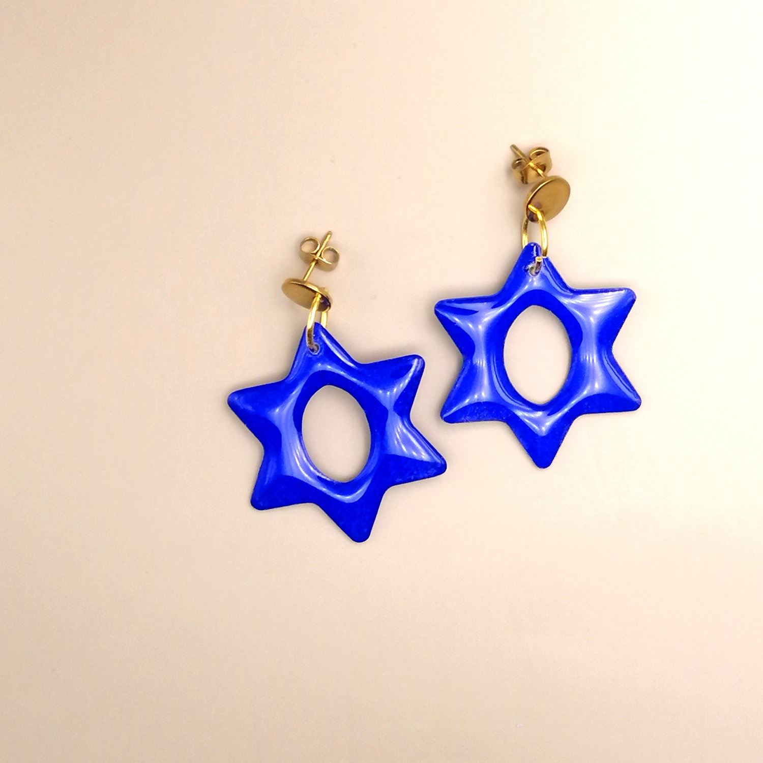 Montage sur clou et assemblage métal doré. Convient aux oreilles percées.