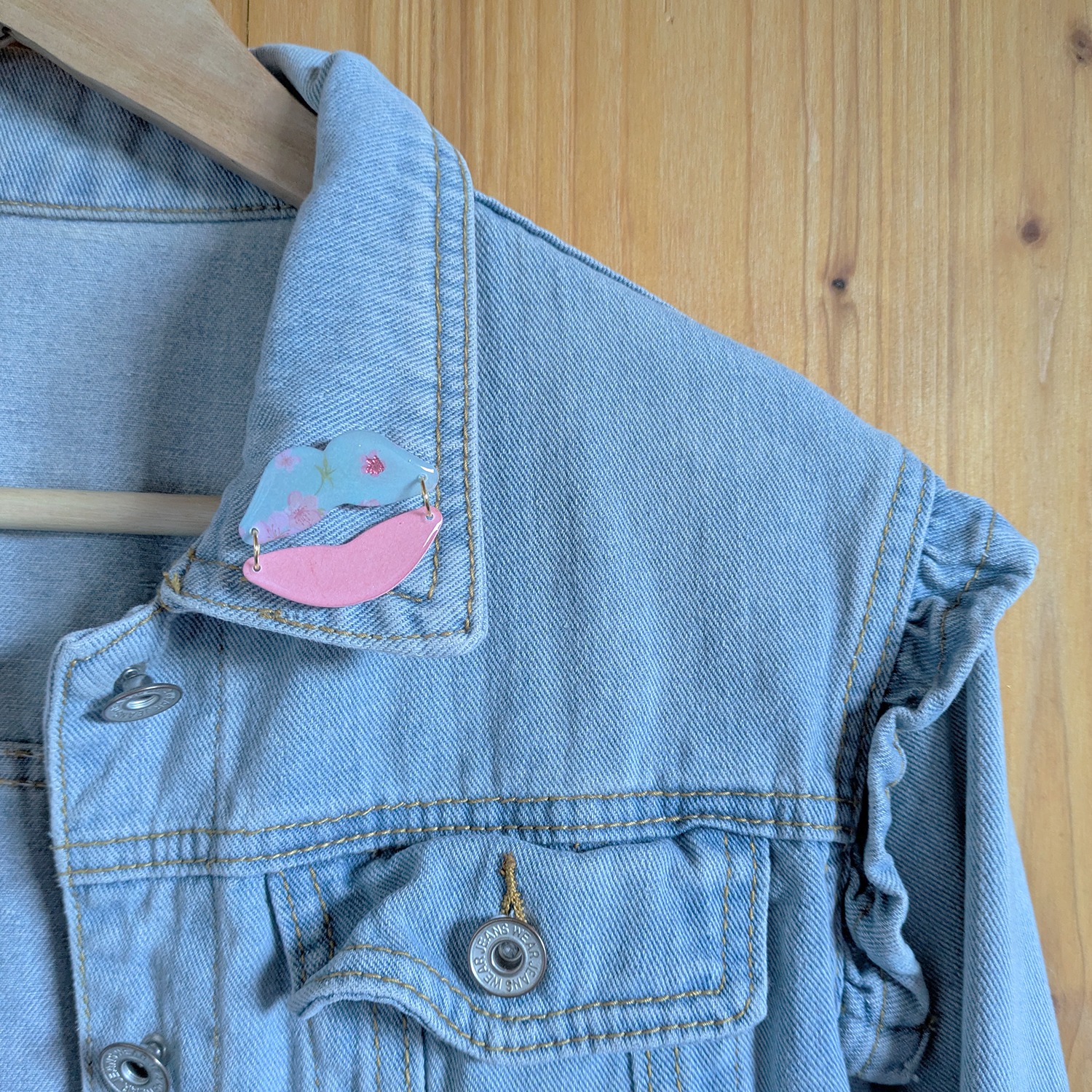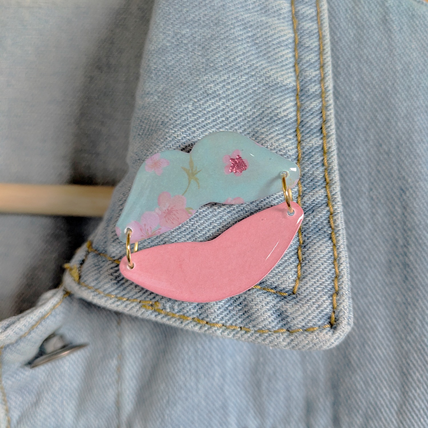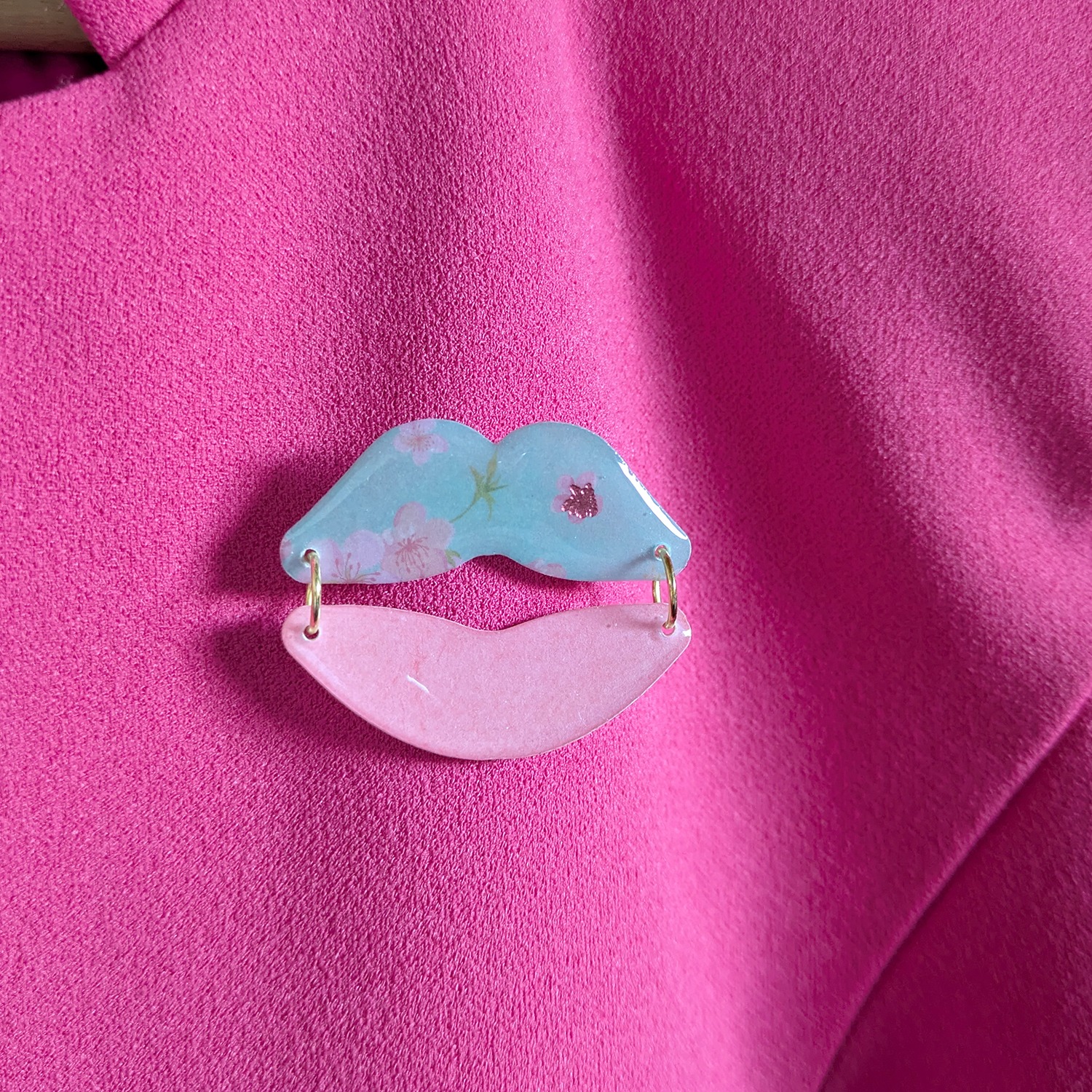 Toujours pulpeuse, brillante et généreuse, cette version pastel-fleurie de la Broche Bisou est comme une éclosion, une renaissance. Vive le printemps, vive les bisous.